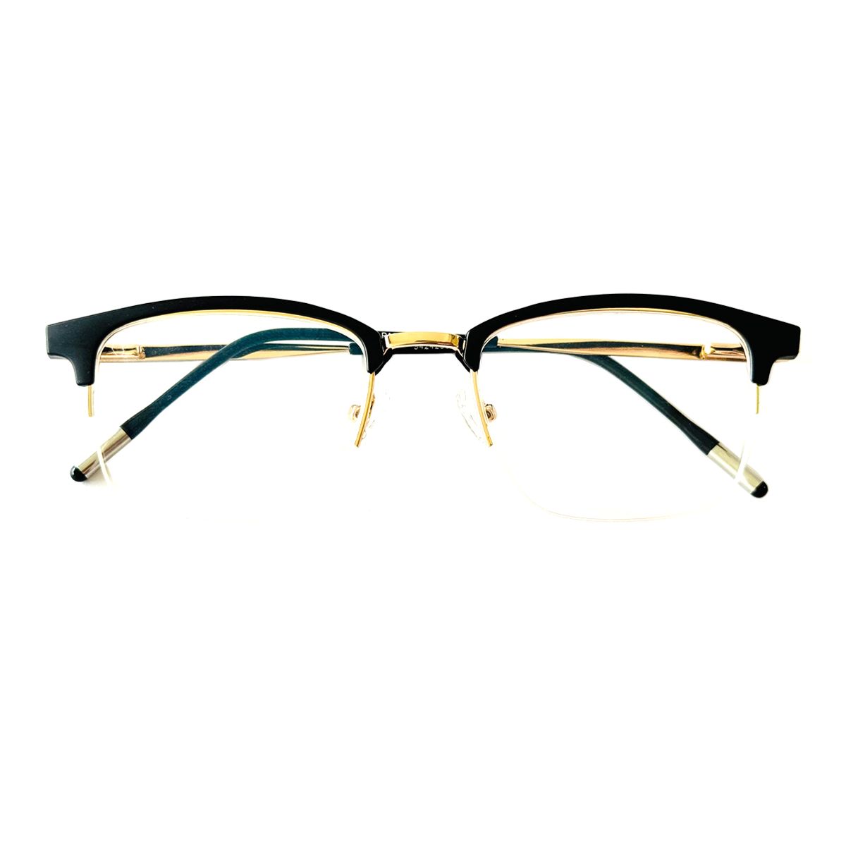 Black with Gold Clubmaster Half Rimmed Eyeglasses for Men and Women.