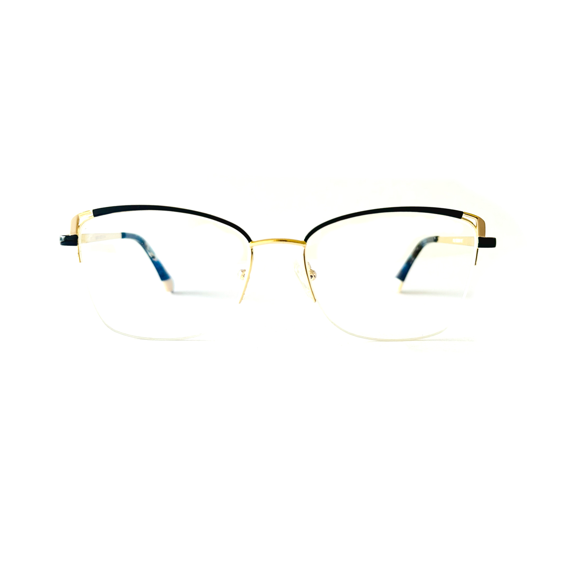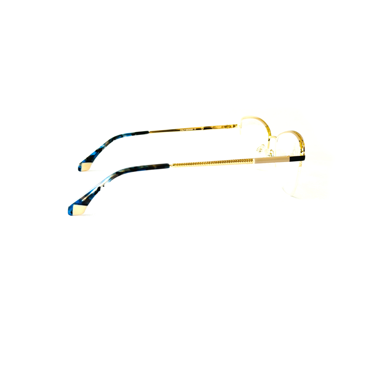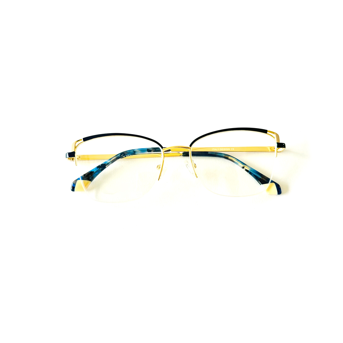 Blue with Gold CatEye Half Rimmed Eyeglasses For Women. These are compatible with Single Vision, Bifocal and Progressive Lenses