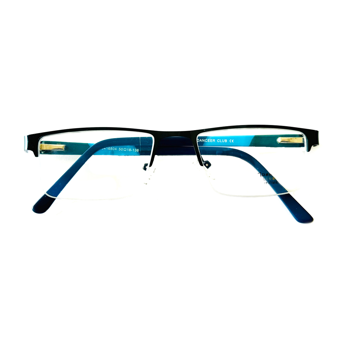 Blue Rectangle Half Rimmed Eyeglasses for Men and Women. These are compatible with Single Vision, Bifocal and Progressive Lenses
