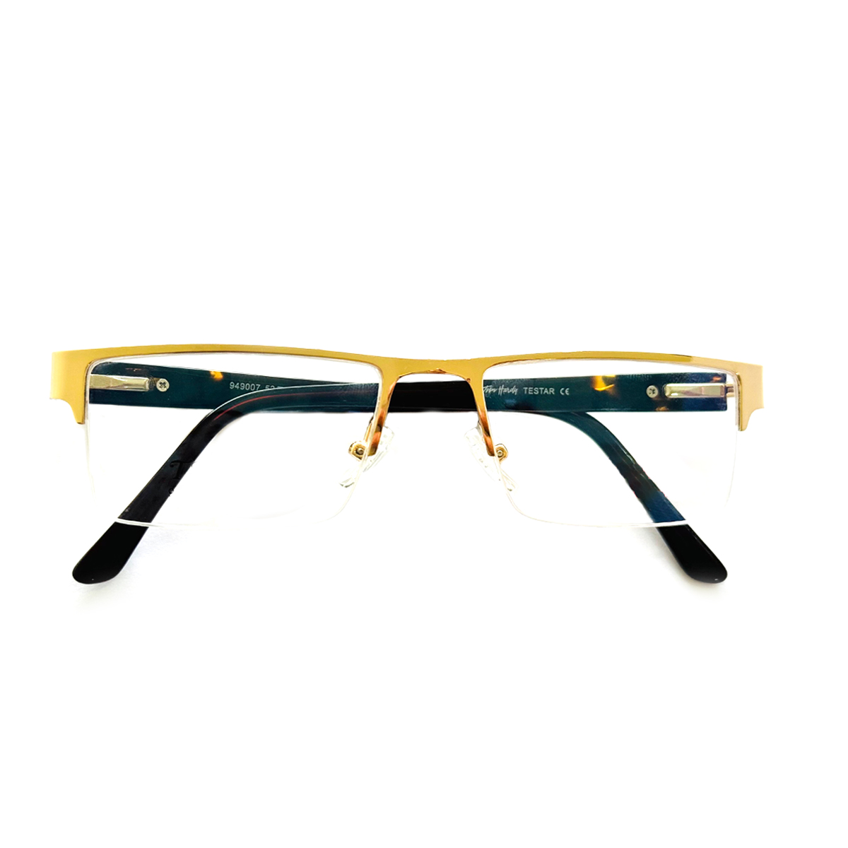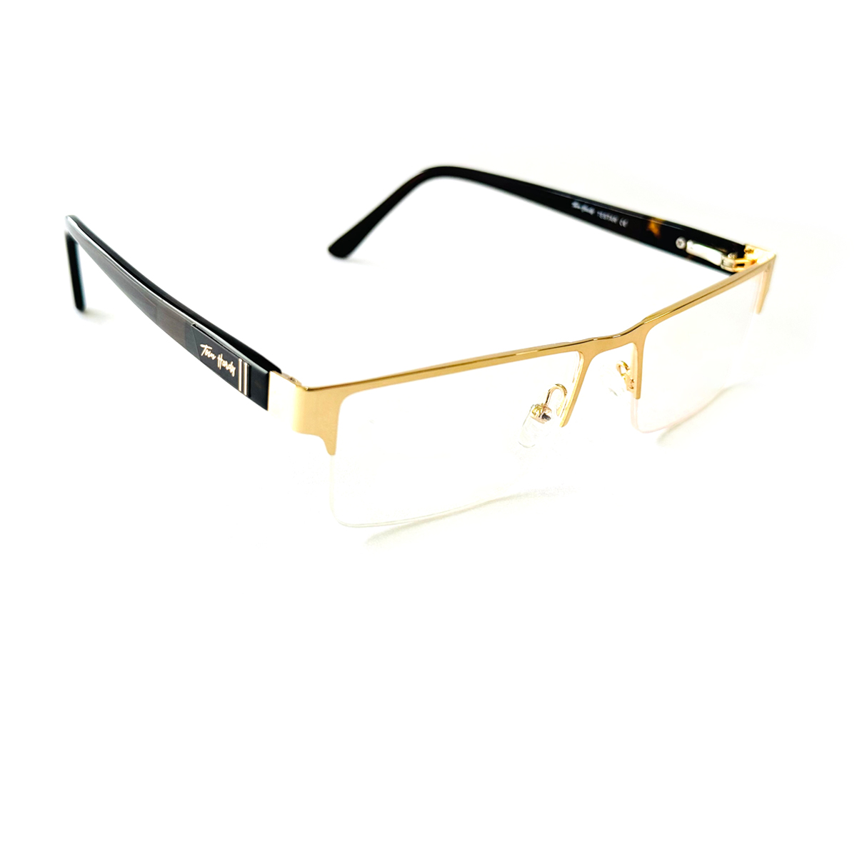 Gold Rectangle Half Rimmed Eyeglasses for Men. These are compatible with Bifocal and Progressive Lenses