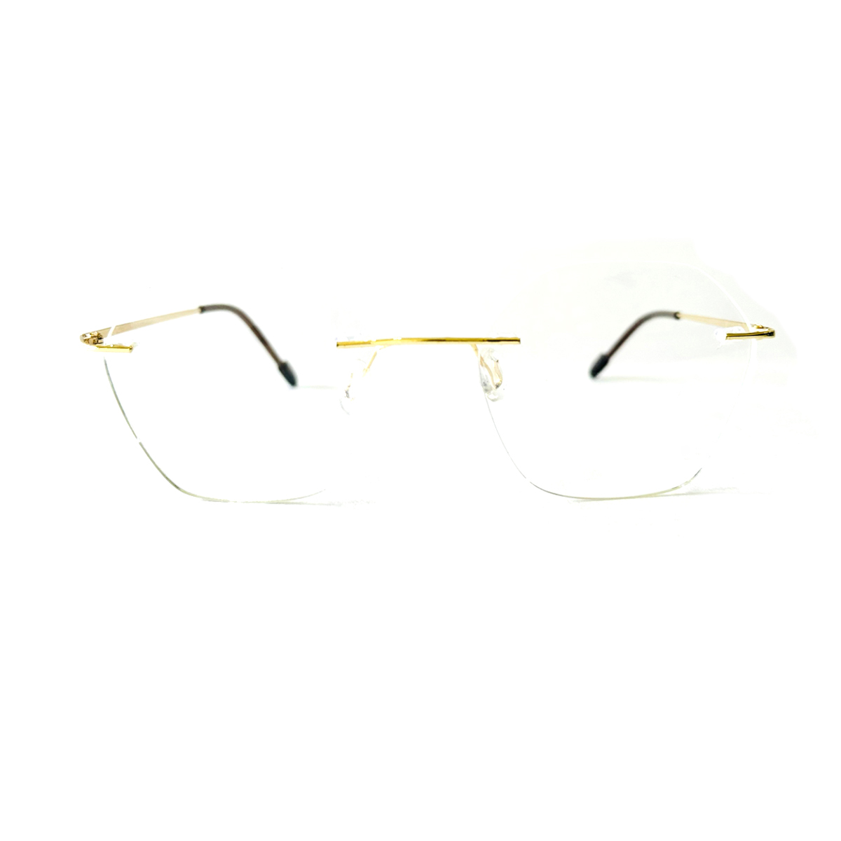 Gold Geometric Titanium Rimless Eyeglasses for Men and Women. These are compatible with Single Vision, Bifocal and Progressive Lenses