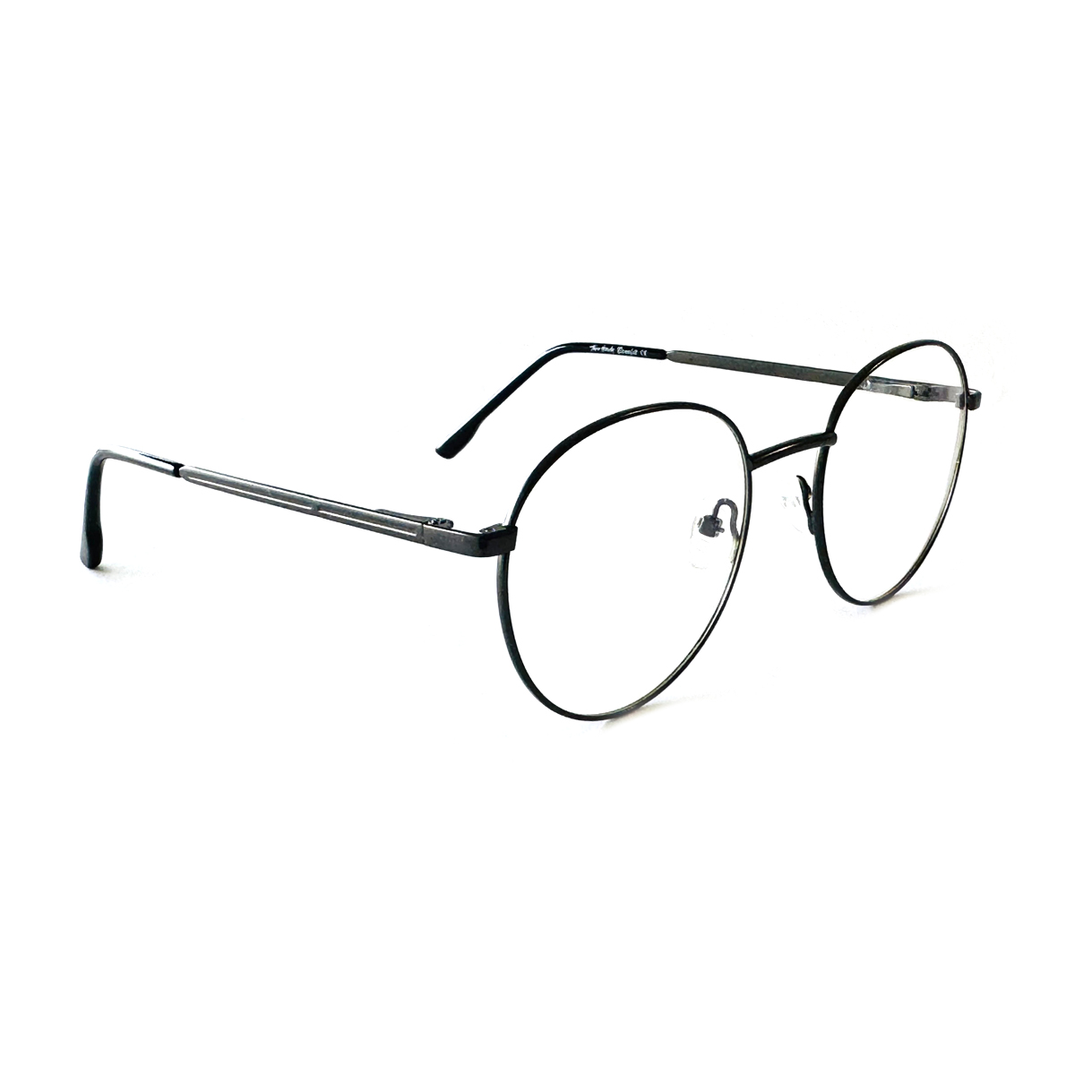 Gun Metal with Black Full Rimmed Round Metal Eyeglasses for Men and Women. These are compatible with Single Vison, Bifocal and Progressive Lenses