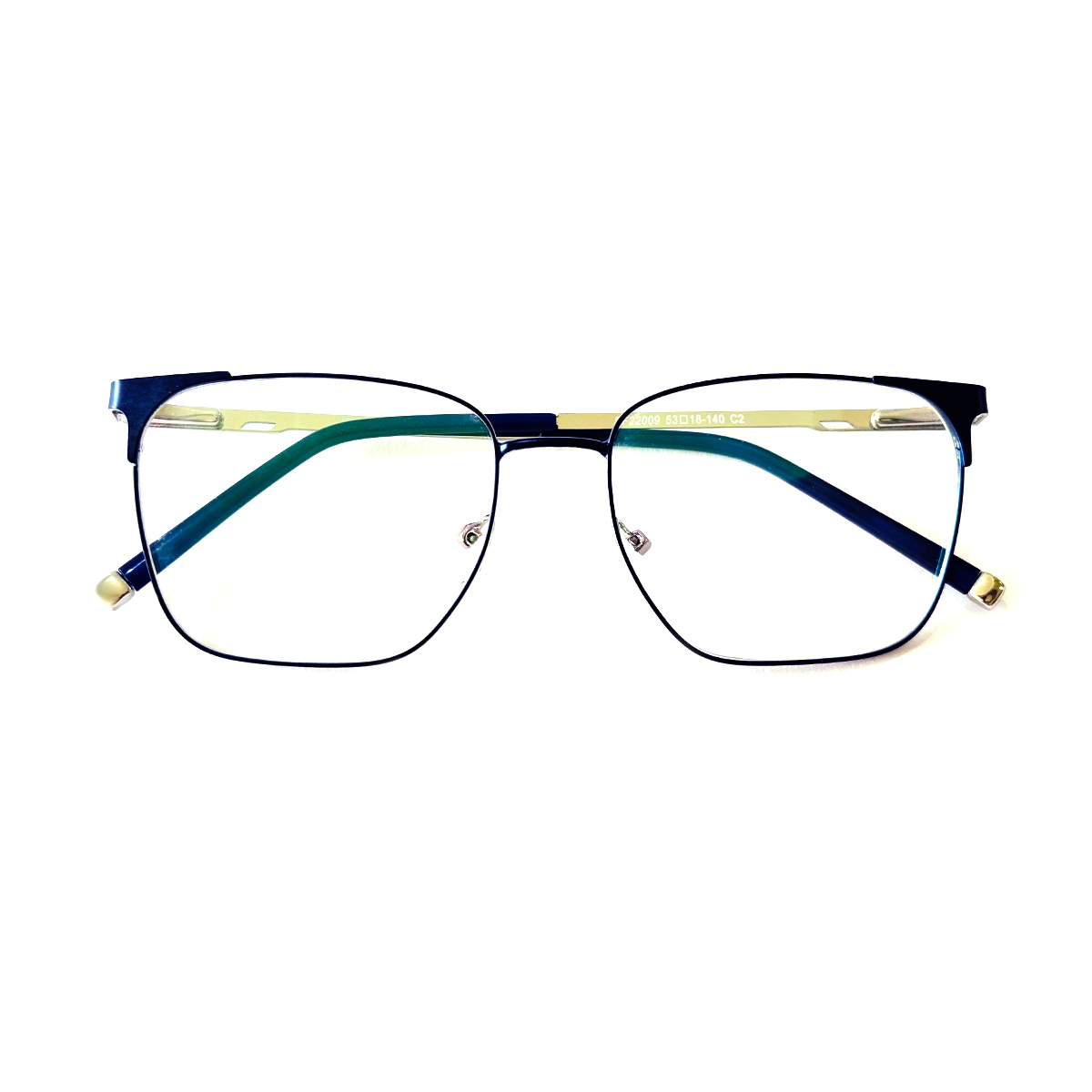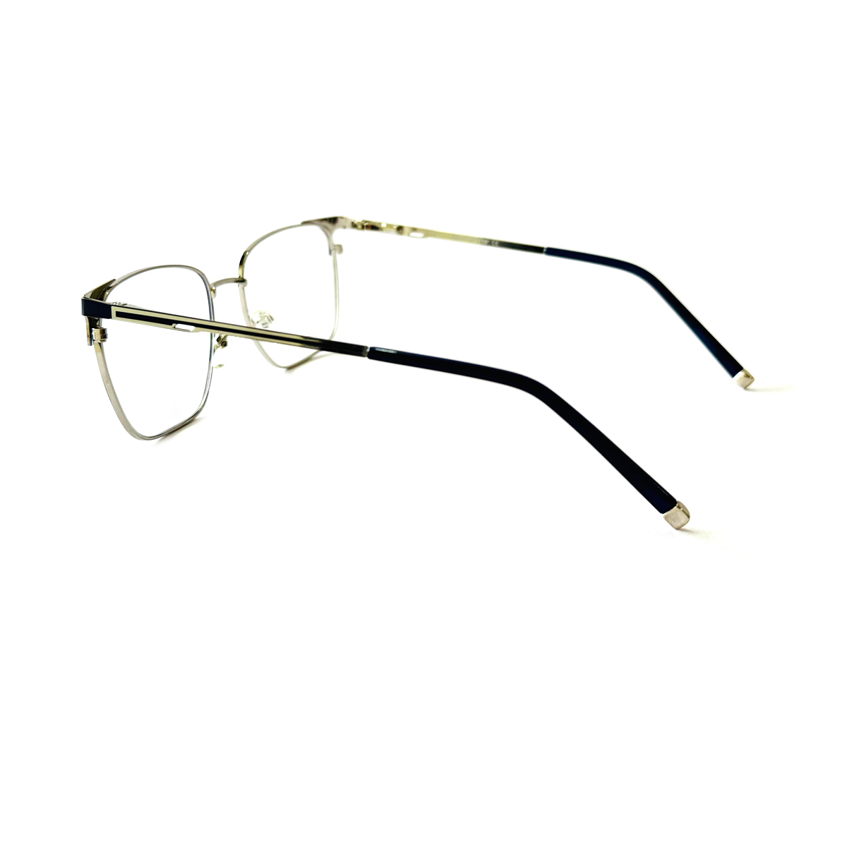 Navy Blue with Silver Square Metal Full Rimmed Eyeglasses for Men and Women. These are compatible with Single Vision, Bifocal and Progressive Lenses
